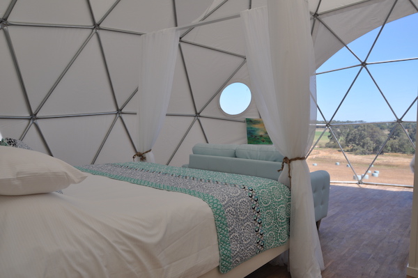Mile End Glamping self-contained studio domes accommodate 2 persons per dome in a light-filled, 65 square metre, open-plan layout. Each dome is elevated off the ground to maximise the valley views and connected to a private BBQ and outdoor bath deck. Architecturally designed using patterns found in nature, the domes are illuminated with natural light to create closeness with the outdoors in a comfortable and energy efficient environment. Their amazing design offers all year round comfort.